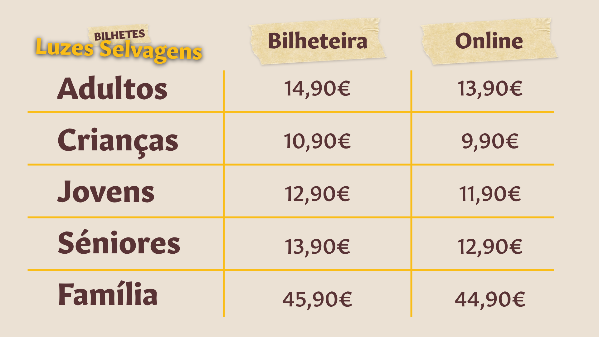 Durante esse período, o Zoo oferece duas formas de visita:Visita completa ao Zoo + exposição de luzes – quem compra o bilhete Zoo tem acesso gratuito à Luzes Selvagens, nos dias em que a exposição se realiza.